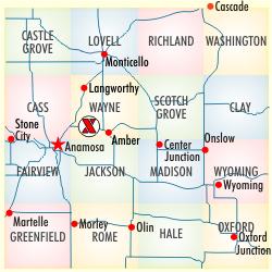 | Wayne Township Section 29 Moved. Some of the gravestones were relocated to Riverside cemetery in Anamosa. "Mr. William Rieken has purchased the land known as the Burr Oak church grounds for a consideration of $80 per acre. This was formerly a part of his place." (Monticello Express, November 23, 1905. Steve Hanken) |