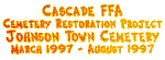 Steve Stary (West Union), Betty Ganfield (Cascade FFA member), Dean Gipple (Columbus Junction), and Spot the Dog work at Johnson Town Cemetery.