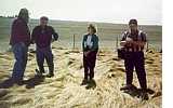 Howard Andrews (Center Junction), Herb Rehmke (Oxford Junction), and Connie Humpal (Anamosa), members of the Jones County Cemetery Commission survey the Johnson Town Cemetery in Scotch Grove Township along with Craig Neises, reporter for Monticello Iowa Express in March 1997.