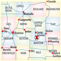 |  Many thanks to Steve and Donna Story for allowing us to post material from their book Madison Center Cemetery,, to Jim Schultz for providing me with a copy of the book, and to Sharon Lindbloom for providing photos of the stones. The 143-page book contains extensive information on the families of those buried at Madison Center cemetery as well as Madison county history, and can be ordered from Steve and Donna Story in West Union, Iowa. |