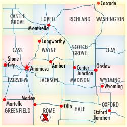 |   Click on the  for a photo of the tombstone. This reading, provided by the Jones County Genealogy Society, was transcribed by Jim Christianson and proofread by Joanne Wilken. Photos: Jim Christianson | |||||||