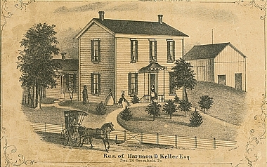 Drawing of the Harmon Keller residence, Section 24, Cass Township, enumerated on page 3, from an 1867 plat map submitted by Jim Christianson. |