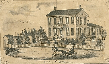 Drawing of the Esau Franks residence, Section 7, Wyoming Township, enumerated on page 44, from an 1867 plat map submitted by Jim Christianson. |