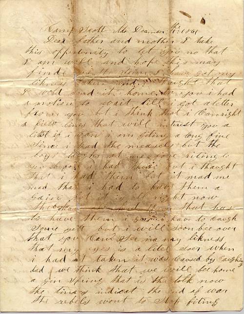 Letter from Benjamin F. Harrison to his parents