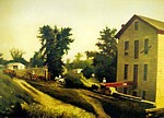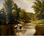 Gary Lehman has supplied scans of the 1900 "Cooling Off in the Wapsipinicon River," the 1909 "Sunday Stroll," and the self-portrait. The bridge in the background in "Sunday Stroll" is still there in Anamosa. |