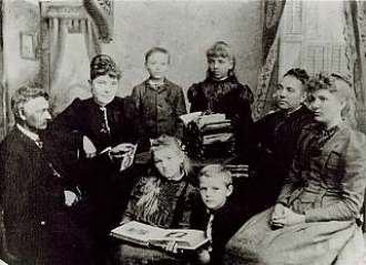 ![]() Fredrick G. Lehman, Mary Theresa (Nichols), Fredrick August, Alma, Elizabeth Anna (Reitz-Nichols) Lehman, Bertha, Bottom Row: Martha (Mattie), and Paul. Frederich G Lehmann's family came from Dresden, Germany, where they were gardners to the royal family. Frederich received an education at the castle where he lived as a child. He had lost his sight in one eye, but was a trained artist and painted many family portraits. He came to the US to avoid serving in the German army. Immigration: 22 Dec 1856, from Hamburg, Germany to New York on the ship, Borussia At home in Anamosa, he painted murals on the walls of his house, however, after he lost his house to a fire, he vowed only to paint on canvas so his paintings might be quickly gathered in case of another fire. He was married to Mary (last name unknown) in the 1870 census, and after Mary died, married Elizabeth Anna Nichols (Reitz). Fredrick died in 1917. Anna Elizabeth Reitz was born in Koblentz, Prussia, Apr 1840 to Johann and Margarethe Reitz. They arrived from Bremen, Germany to NY on 1 Jul 1857 on the ship, Young Sam. The Young Sam was a 1012 ton ship, rigged vessel, that was built in 1855. She was made of oak with copper and iron fasteners. Her dimensions were 172 ft long x 35 ft beam and had a draught of 23 ft. She was filled with merchandise and 348 passengers. The Reitz family settled in Anamosa and on 1 Sep 1861, Elizabeth married Fred W. Nichols. They had four children; Maria, Amelia, Mary and Henry. Fred died sometime around 1871. Elizabeth married George Lehmann, 26 Aug 1872. Three of the children from Elizabeth's first marriage all died within a 3 month period in 1874 of diphtheria; Amelia, Mary and Henry. Two of George's children from the previous marriage were put up for adoption as small boys, Harold and Charles. Between the 1880 and 1890 census shows the following children: Mary, Bertha, Alma, Martha, Augustus, Frederick and Gustaf. Elizabeth died on 12 Aug 1909 . |