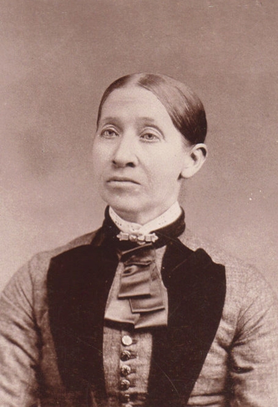 Mrs. Sandhouse, lived north of Monticello, taken by H. W. Hagen and provided by Julie Angus McKeen. She was a friend of Allen Leonard Fairbanks (1832-1916), a noted Jones County farmer.
