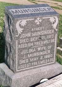 EDITOR'S NOTE: I noticed that Don says John Munsinger died at the age of 99 years and 9 months, but his headstone says 104 years and 9 months. I wrote to Don about this and got the following answer:
