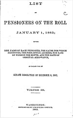 On December 8, 1882, the United States Senate passed a resolution requiring an enumeration of persons collecting military pensions from the Federal government.