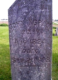 Perhaps the most famous as well as most controversial veteran buried in Jones County is William Nicols. He is buried in the Bear Creek/Beers cemetery. His stone reads, "In memory of Wm. Nicols, Died 3/10/1872 aged 40 years. Born in VA 1832. Joined the Union forces 1863 ever after proved true to the Union. Came to Iowa at the close of the war and was ever more respected by all that knew him." There are those who believe that he was an escaped slave who joined the Union during the war. There are those who believe he was a "camp follower," perhaps a run-away slave who followed the Union troops and when the war was over followed an Iowa soldier home. Whatever you believe, he is buried here in Jones County. |