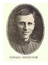 ANOTHER family in this township that has been called upon to furnish two sons for Uncle Sam’s fighting forces, is that of Mr. and Mrs. John Benischek. Edward Benischek, the first of the two sons to be called, was summoned in the draft of April 26th and with the other boys reported at Anamosa on that date, to be immediately sent to Camp Dodge, Iowa, where he was assigned to Supply Co. M. O. T. C. He received considerable training here, but was later transferred to Ft. Riley, Kansas. All the information that we have at hand in regard to his service for his country, is the same that has been the outcome with many of the young men who were anxious to get overseas, and that for some unaccountable