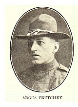 ARGUS FRUTCHEY, who for a number of years has made this city his home, having been employed in the lunch room owned by Mary Burian, was among the first of the young men from this city to enlist in the army