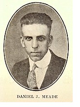 DANIEL J. MEADE, the youngest son of Mr. and Mrs. J. E. Meade, of Oxford Mills, was born at that place, where he has spent all his life with the exception of the past five months spent in the service of his country. He was one of the nineteen boys to leave this city and report at Anamosa July 25th, all of whom were sent to Camp Gordon, Atlanta, Ga. His longing to be of service to his country prompted him to make the best of the time engaged in training, therefore only a little over a month was spent at this camp and he was transferred to one of the embarkation stations, from where he departed overseas about the first of September. He was in the highest of spirits knowing that he was nearing the fields of action, but the ceasing of hostilities found him located in England, where he still remained when the last letter was received by the mother, whose picture we were unable to secure. No doubt he will be returned to this country very soon and mustered out of the service. Dan, who had reached his twenty-sixth birthday, although a resident of Oxford Mills, is one of our soldier boys, and will be welcomed as such in this city.