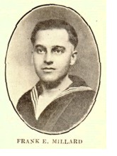 FRANK E. MILLARD, of Cedar Rapids, who for some time was employed by the C. M. & St. P. Railway Co., making this city his headquarters, therefore being claimed as one of our boys, enlisted in the navy shortly after the United States entered the war. He was immediately sent to Norfolk, Va., but in a very short time was transferred to New York and was assigned to the U. S. S. Munaires. Frank has been awarded two gold rating stripes for service rendered in lessening the danger from submarines. He has been in the navy since November 28, 1917, and has made four trips to France, and one trip from France to Portugal, serving as second then first class machinist, and then as machinist’s mate on the U. S. S. Munaires. He is now attending a steam engineering school at Pelham Bay, N. Y. Following this course he will be sent to Brooklyn, where those who successfully complete the course will be commissioned as officers. He is expecting to make several more trips across in the work of bringing back the troops before being released from service. He is hoping to again resume his position as a locomotive engineer for the C. M. & St. P., after his return to civilian life, as he says that he finds himself becoming lonesome for that work. Both the parents of this young man are dead, the father having been killed about two years ago by a tractor engine. Since that time he has made his home with a sister at Cedar Rapids.