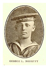 GEORGE L. NODRUFT, the son of Mr. and Mrs. G. W. Nodruft, of this city, who moved to this vicinity from Missouri about three years ago, at the time that this country became engaged in the world war, was very anxious to get into the service. Many branches of the service were considered and finally decided to enlist in the navy, which he did May 1st, 1918, and was sent to the Great Lakes Naval training station to receive his training for duty. He remained at this station until the month of
