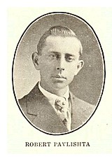 ROBERT PAVLISHTA, the son of Mr. and Mrs. Jos. Pavlishta, was born on the farm near this city, where he grew to manhood. Almost his entire life has been spent in this community, with the exception of the time spent in the army and a short time in Canada, where he was employed. He was employed in Canada at the time of the registration June 5th, 1917, therefore failed to register, but shortly afterward he returned to this country, and to show that he had not tried to escape registration voluntarily offered his service to his country. He was taken into the army and has been doing his “bit” under the Stars and Stripes. A few years ago he operated a garage in this city, which was later sold and he