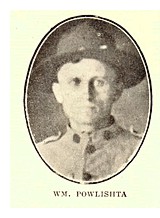 WILL POWLISHTA, another son of the above mother, was called into the service of his country in the July draft, reporting at Anamosa the 25th of that month and was sent to Camp Dodge to receive his training as a