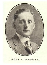 JERRY A. ROUBINEK, the son of Mr. and Mrs. Frank Roubinek, was born in this city October 27th, 1891. He attended the local public schools from which he graduated with the class of 1908. A few years ago he accepted a position as inspector for Swift & Co., of Clinton, Iowa, where he worked for a number of years. He resigned this place to accept a position with the C. M. & St. P. Railway Co., to do clerical work in their offices at Monticello. It was here that he received his call from the Government April 25th, of this year. He reported at Anamosa and was sent to Camp Dodge, where he remained only for a short time and was then transferred to Camp Travis, Texas, from which