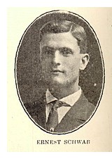 ERNEST SCHWAB, the son of Mrs. Ellen Schwab, who passed away in 1892, twenty-six years ago, was called in the July draft, reporting at Anamosa the 25th and was immediately sent to the southern training