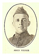 JOHN WEBER, also the son of Mr. and Mrs. N. J. Weber, left the farm and home to enter the service of his country, having been called in the draft of July 25th, being one of the nineteen boys called from this township at
