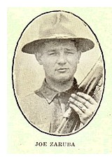 JOE ZARUBA, the son of Mr. and Mrs. Mike Zaruba, living about three miles northeast of this city, where he has always made his home, was born January 9th, 1896. When his draft call came he responded willingly and was one of the eight boys that were called February 23rd, a program being held at the Fern Theatre in their honor before departing for Anamosa, from which place they were sent to Camp Dodge to receive their early training to fit themselves for overseas duty. He remained at Camp Dodge about two months and was transferred to Camp Sievers, S. C., where they remained only a short time and were sent on to Camp Merritt, N. J. From this camp he sailed for overseas about the first of May of this year. His safe arrival was announced by the officials at Washington.