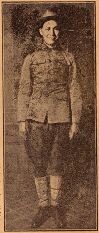 Private Arthur McCullough of Anamosa was the first Jones County boy to give his life in action in the World War. He died on May 27, 1918, from wounds received while serving with the 168th (Iowa) Infantry of the Rainbow division. He was a member of the Machine Gun Company. He enlisted on April 9, 1917, and was trained at Ft. Des Moines. His Regiment landed in England Dec. 9, 1917. Arthur McCullough was born in Fairview, Jones County, Iowa, Feb 22, 1899. His parents were Joseph McCullough and Libbie Leaper McCullough. His mother passed away in January, 1903, and he made his home from that time with his grandmother, Mrs. John A. Leaper, a soldier's widow in Anamosa. Three brothers, Jack, Farl and Homer also served in the World War, making a record for service for one family reflecting credit on the loyal lineage of the old civil war veteran. Arthur was a boy loved by all and in whom we feel a just pride for his willing sacrifice of his young life for his country and for humanity. | ||||
