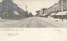 Other tenants have include: Miss Roger's Millinery, a grocery operated by Charles H. Lull and John Hicks, and then by Lull and Mr. Perfect, Farmer's Traders Bank, H. Wurtzbacher's Boots and Shoes, Grahams Department Store, Watkins Dry Goods store and Dr. Easton, a dentist. Next door to Conmey's was the drug store built by Richard McDaniels in 1866. the store was operated by J. G. McGuire by 1868 as the Jones County Drug Store or Stone Front Drug Store. Later proprietors were Brown's Drug and Beam's Drug Store. In 1919 H. Weiss moved in his photographic studio. To the west of the drug store is another building constucted by William T. Shaw. It was occupied by the D. A. Peet and Archie Cox dry goods and grocery store. Over the store was C. R. Scott's law office. Later the space held MaLaughlin's Harness shop. The next building was originally occupied by the First National Bank owned by Horace Metcalf and later by C. L. Niles, and John and George Watters. Metcalf sold the building to William D. Gordon who was operating Gordon's Dry Goods Bazaar at the time this photo was taken. |