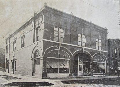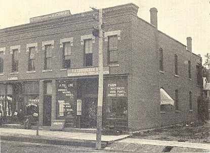 This photo also shows the Grand Opera House and, across the alley, the Cunningham building. Built in 1869 by E. B. Alderman and Dexter Cunningham, the building housed Capt. Alderman's agricultural implement business. He was bought out by Cunningham. F. J. Cunningham followed Dexter and eventually S. McLaughlin operated a harness shop there. The east room of the building housed E. J. Wood's clothing store which was replaced by Crawford Clothing Co. The Good Templars had their lodge on the second floor.